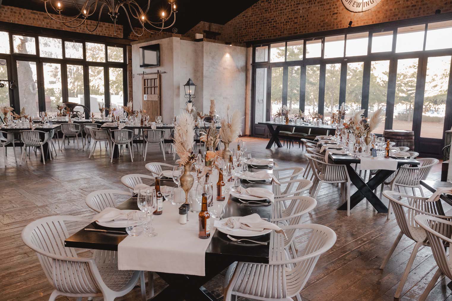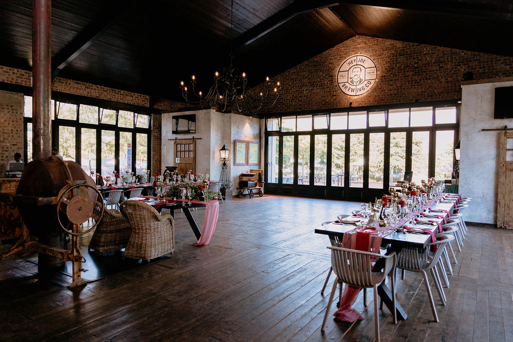 Nestled in the picturesque Cape Winelands, just 3km outside Franschhoek and within an hour’s drive from Cape Town’s CBD, lies Hey Joe Brewing Company, an exceptional venue that welcomes both local and international guests with ease. Surrounded by serene countryside, our unique setting provides the perfect backdrop to bring your event to life. Featuring raw brick accent walls, stainless steel fermentation tanks, a breathtaking copper brew house, stained glass windows and lush lawns, our venue effortlessly accommodates various styles, from traditional to vintage, rustic to contemporary, or simply fun-filled.